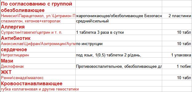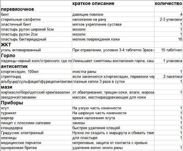Пример базовой аптечки для первой помощи